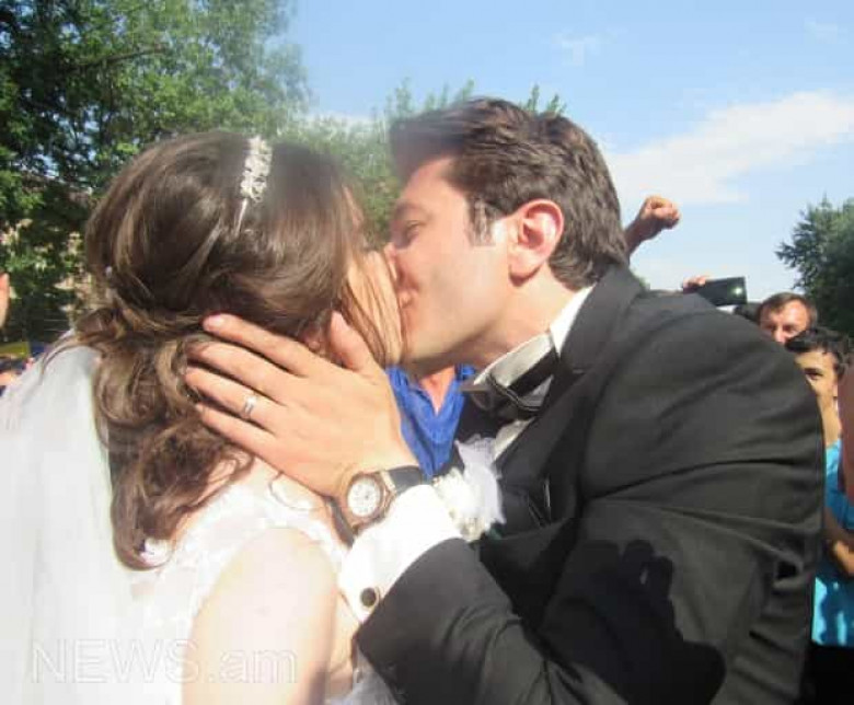 Փեսայի անունը Դավիթ էր, հարսինը՝ Նոնա։ Դավիթը լրագրողների հետ զրույցում նշեց. «Այստեղ մեր ընկերներն են, մեր հարազատներն են ու ծնողները։ Մենք ուրիշ տարբերակ չունենք, պիտի միանանք, մեր ուրախությունը կիսենք մեր ընկերների հետ։