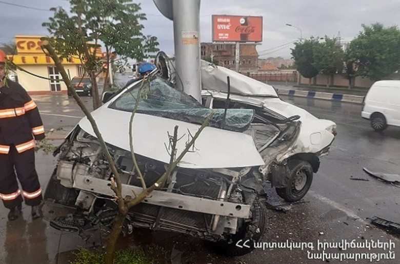 Փրկարարները հոսանքազրկել են ավտոմեքենան և հատուկ տեխնիկայի միջոցով ավտոմեքենայից դուրս են բերել վարորդի դին: