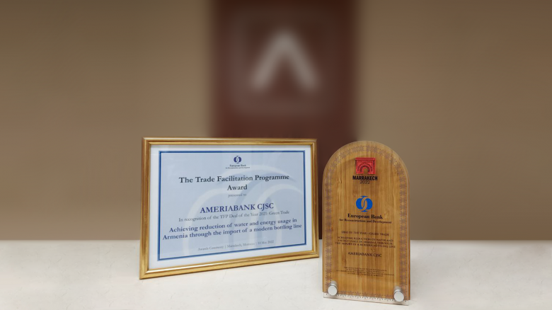ՏՆՏԵՍՈՒԹՅՈՒՆԱմերիաբանկի և իտալական Banca Popolare di Sondrio բանկի համատեղ նախագիծը, որն ուղղված է ջրային և էներգետիկ ռեսուրսների պահպանմանը, արժանացել է Վերակառուցման և զարգացման եվրոպական բանկի (ՎԶԵԲ) «Տարվա գործարք 2021. Կանաչ առևտուր» մրցանակին: