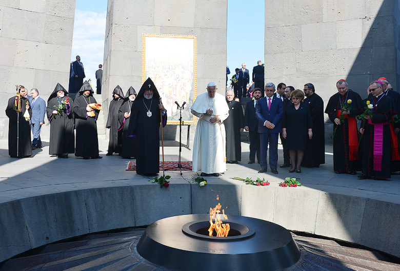 2016-Ֆրանցիսկոս Պապը Հայաստան այցի շրջանակներում այցելել է Ծիծեռնակաբերդի հուշահամալիր և ծաղիկներ է խոնարհել անմեղ զոհերի հիշատակը հավերժացնող անմար կրակի մոտ;
