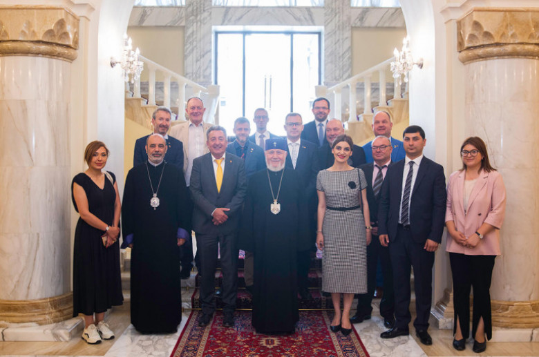 Դեսպան Ենգիբարյանը, Ամենայն Հայոց Կաթողիկոսին ներկայացնելով հյուրերին, անդրադարձավ պատվիրակության այցի նպատակներին: