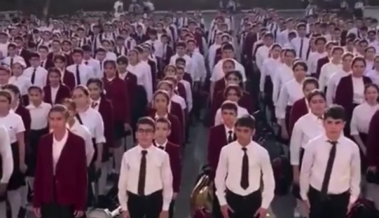 Նշենք, որ երեխաներին սովորեցնում են կրկնել հայտնի ադրբեջանական ֆաշիստական հակահայկական կարգախոսը.