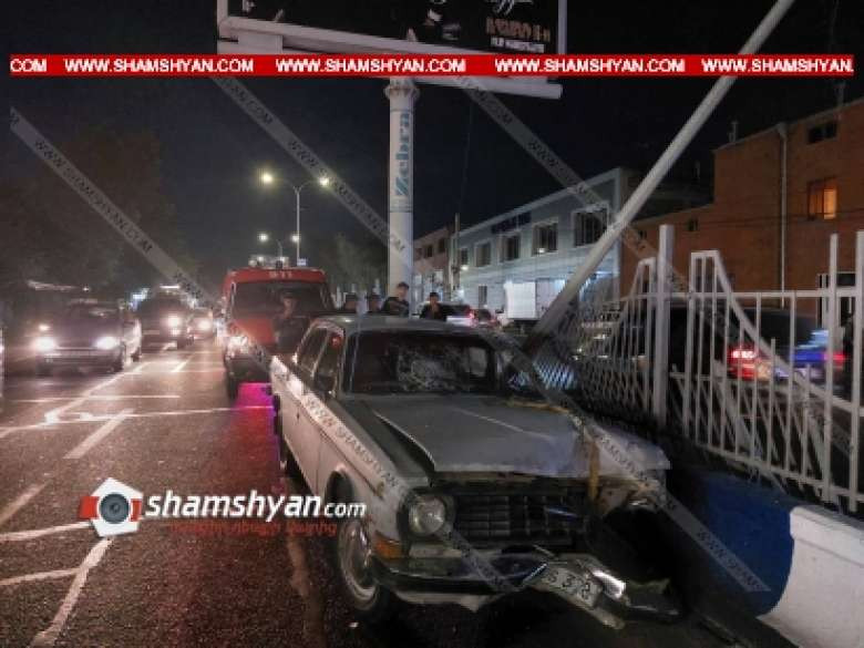 Երևանում ГАЗ 2410–ը բախվել է բաժանարար գոտու երկաթբետոնե ճաղավանդակներին ու էլեկտրասյանը