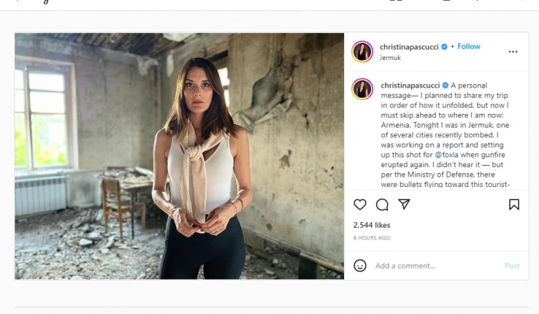 Ամերիկացի հայտնի լրագրող, FOX 11 Los Angeles-ի թղթակից Քրիստիանա Պասկուչին, ով երեկ երեկոյան եղել է Ջերմուկում, նույնպես հաստատել է, որ ադրբեջանական զինուժը կրակել է Ջերմուկի ուղղությամբ: