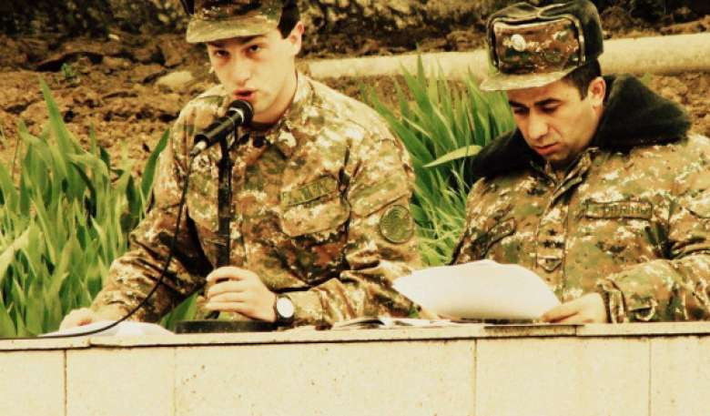 Լուսանկարը հրամանատար (հետագայում նաեւ՝ կնքահայր) Գեղամ Գաբրիելյանի հետ, 2014թ., 2-րդ պաշտպանական շրջան»: