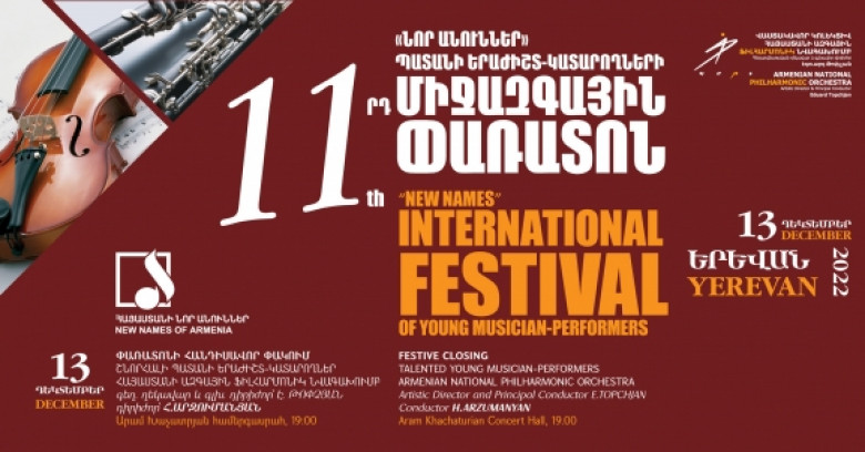 ՀՀ ԿԳՄՍ նախարարության աջակցությամբ «Մշակույթի գործիչների ընկերակցություն» ՀԿ-ն դեկտեմբերի 10-13-ը կանցկացնի «Նոր անուններ» պատանի երաժիշտ-կատարողների 11-րդ միջազգային փառատոնը: