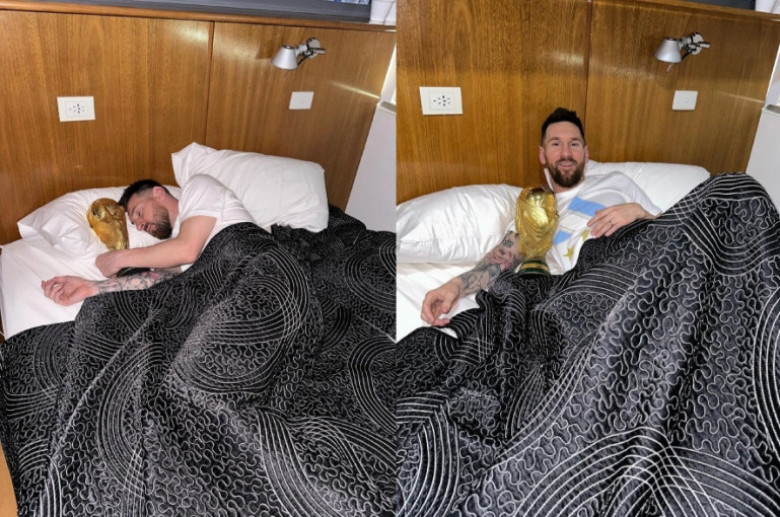 Արգենտինայի հավաքականի հարձակվող Լիոնել Մեսսին սոցցանցում հրապարակել է լուսանկար, որում երևում է, որ մարզիկը քնել է՝ Ֆուտբոլի աշխարհի առաջնության ոսկյա գավաթը գրկում: