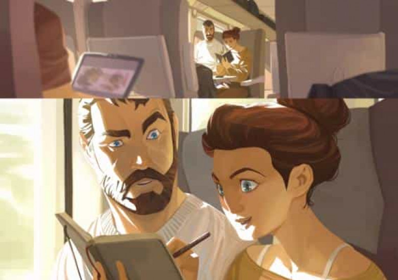 Ձեր ուշադրությանն ենք ներկայացնում ֆրանսիացի պատկերազարդող Nesskain-ի՝ «Café Rouge» ստեղծագործությունը, որտեղ պատկերված են երկու հերոսների՝ Դեյվիդի և Էլիզի փոխադարձ զգացմունքները: