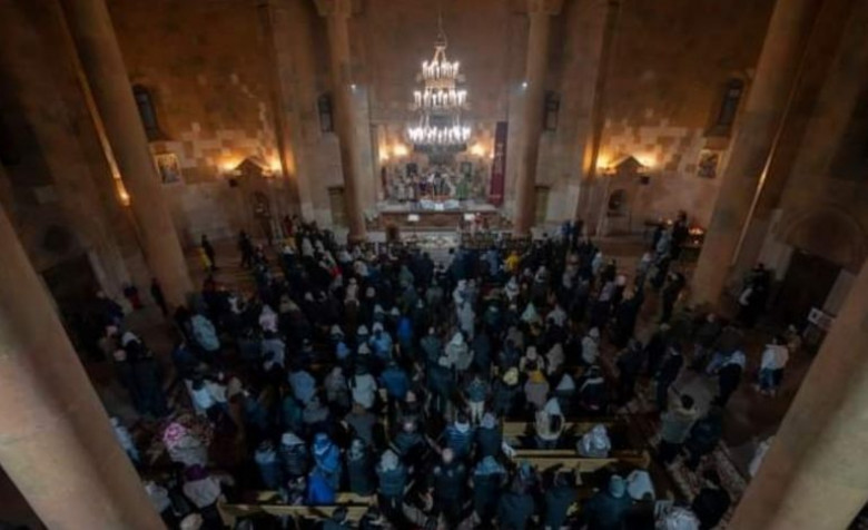 Եկեղեցին լիքն էր հավատավոր մարդկանցով, ովքեր եկել էին եկեղեցում դիմավորելու Նոր Տարին: