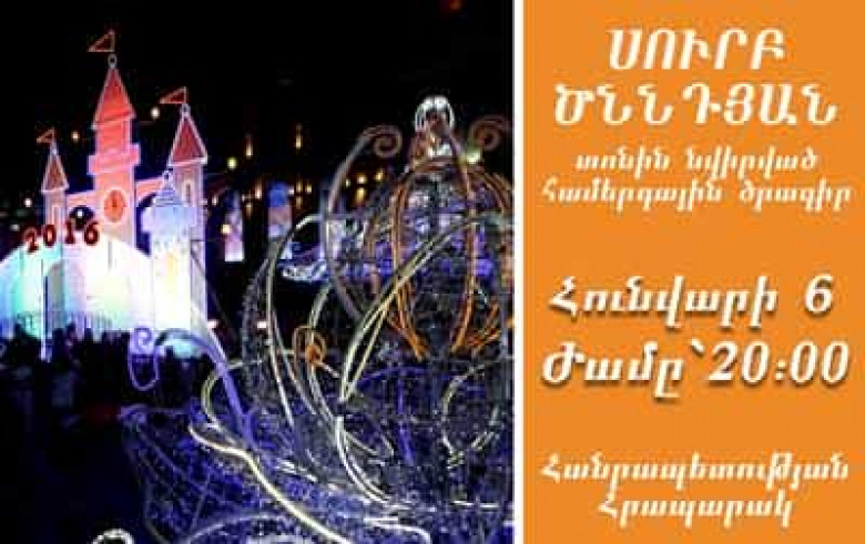 Երևանի քաղաքապետարանը հունվարի 6-ին , ժամը 20-ին բոլորին հրավիրում է Հանրապետության հրապարակ՝ տոնական ուրախ միջավայրում, միասին նշելու Սուրբ Ծննդյան տոնը: