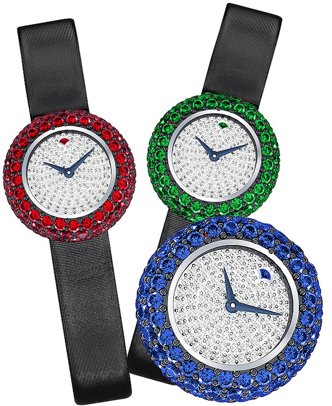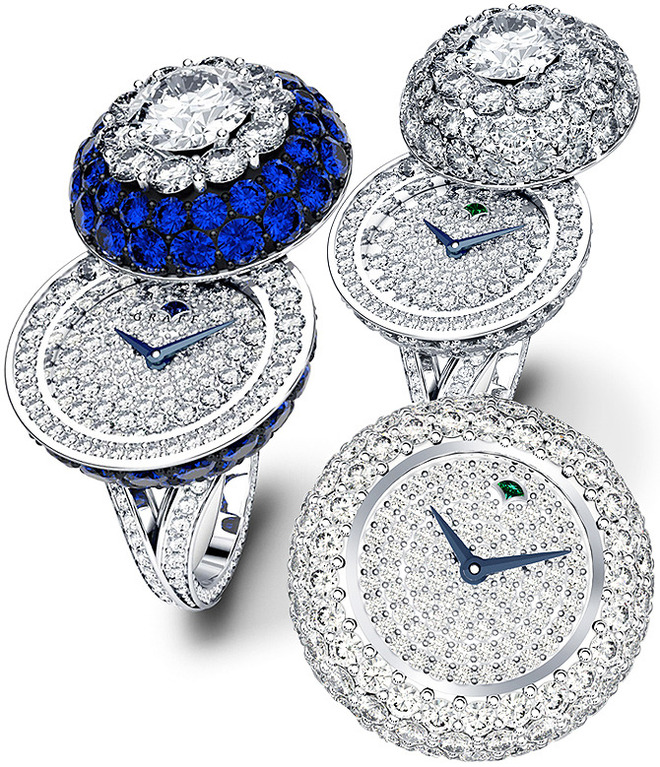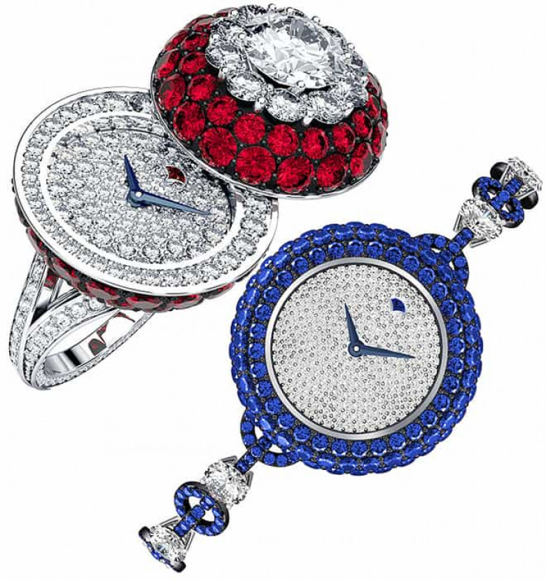 Ի դեպ, նորույթներից մի քանիսը ձեռքի մի շարժումով ճոխ ժամացույցից վերածվում են ոչ պակաս ճոխ թևնոցի: Հրաշալի ձևափոխման գաղտնիքը որոշ ժամացույցների վրա եղած պատյանն է, որը, փակելով ժամատախտակը, նմուշը վերածում է թևնոցի: