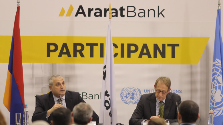 ՏՆՏԵՍՈՒԹՅՈՒՆՍույն թվականի մարտի 3-ին ԱրարատԲանկի Զարգացում մասնաճյուղի հանդիսությունների սրահում տեղի ունեցավ ԱրարատԲանկի՝ ՄԱԿ-ի «Գլոբալ պայմանագիր» (UN Global Compact) միջազգային նախաձեռնությանը միանալու մեկամյակին նվիրված միջոցառումը։