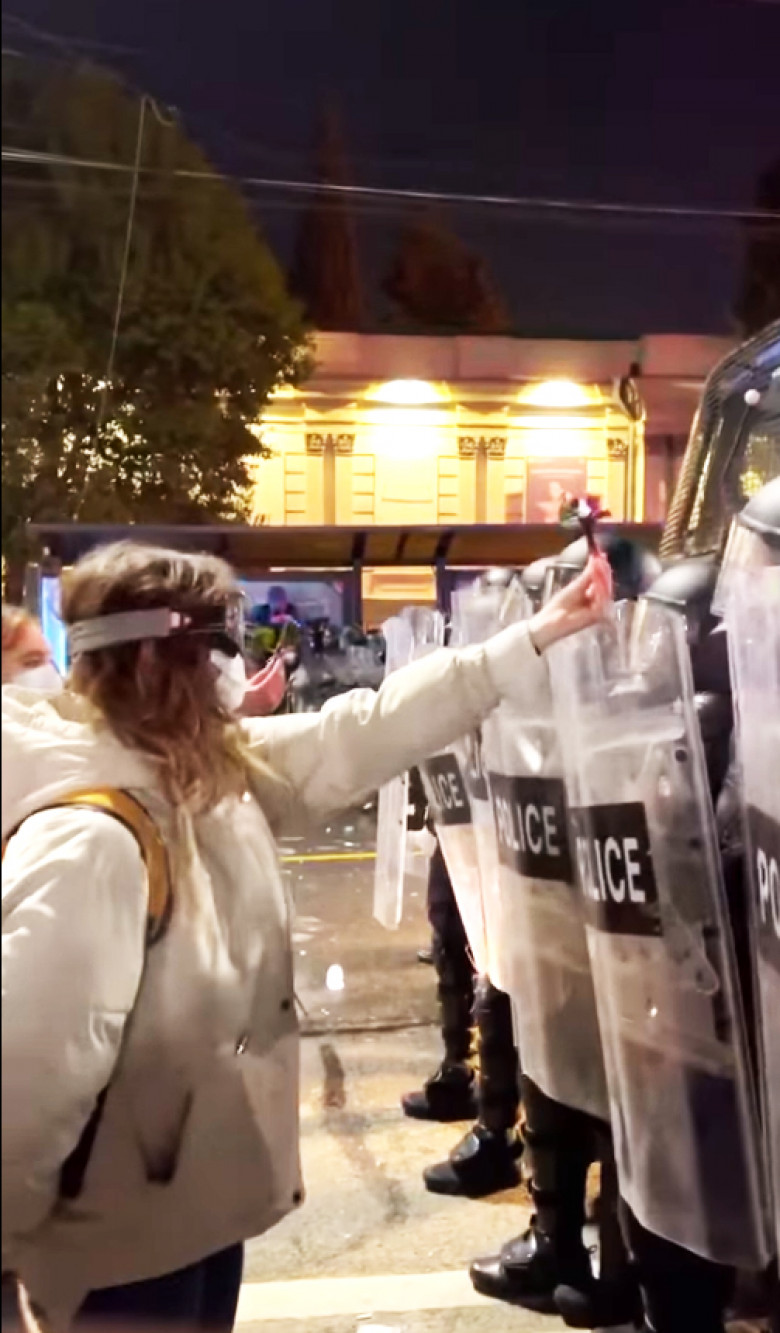 Վրաց ցուցարարներից մեկը երկրի դրոշը ոստիկանների առաջ գետնին փռեց, բայց ոստիկանը դա չհանդուրժեց և դրոշը գետնից բարձրացրեց՝ նախապես ինչ-որ շիթ ցողելով ցուցարարի վրա... Նիկոլ Փաշինյանի համար 2018-ին հրապարակ լցվածներից մի 4-5 հոգի, Հայաստանի դրոշը մեքենայի շարժիչի ծածկոցին փռած, վրան թուղթ էին խաղում: Խաղացին... Շուտով 5 տարի կլինի արդեն: Վեցերորդը հարցական է: