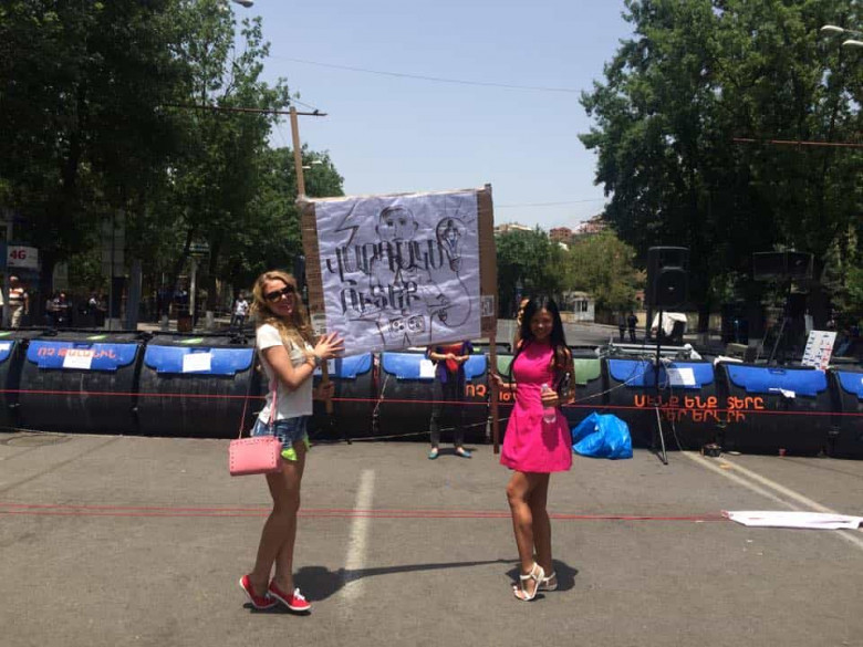 «Վարդակս ուտեք». ռուս աղջիկների պաստառը՝ Բաղրամյան պողոտայում (լուսանկար)