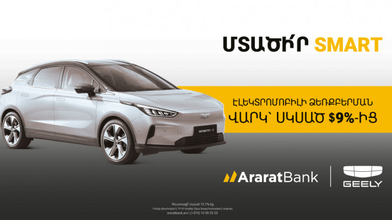 «Smart» լուծում ԱրարատԲանկից. էլեկտրոմոբիլի ձեռքբերման վարկ՝ սկսած 9%-ից