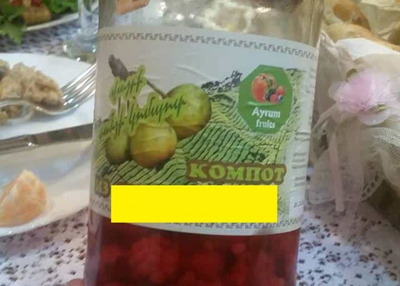 Պիտակին նշված է. «Վայրի տանձի կոմպոտ»: Պարունակությունը՝ ազնվամորի: