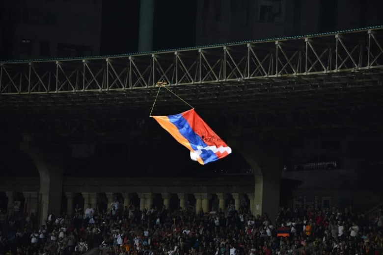 Հանրապետական մարզադաշտի վրա սավառնեց Արցախի դրոշը (տեսանյութ)
