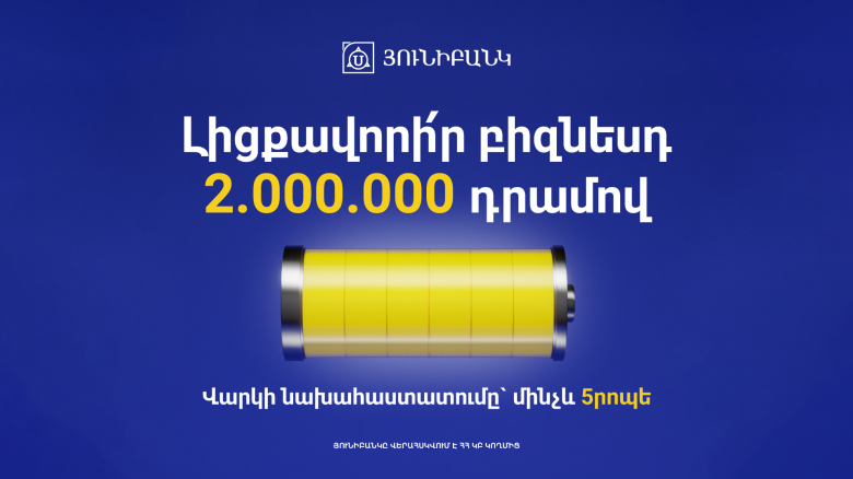 ՀԱՍԱՐԱԿՈՒԹՅՈՒՆՅունիբանկը ձեռներեցներին առաջարկում է էքսպրես վարկավորում. մինչև 2 մլն դրամի վարկ կարելի է ստանալ առանց գրավի և երաշխավորների։ Վարկի հաստատման մասին նախնական որոշումը կայացվում է 5 րոպեում: