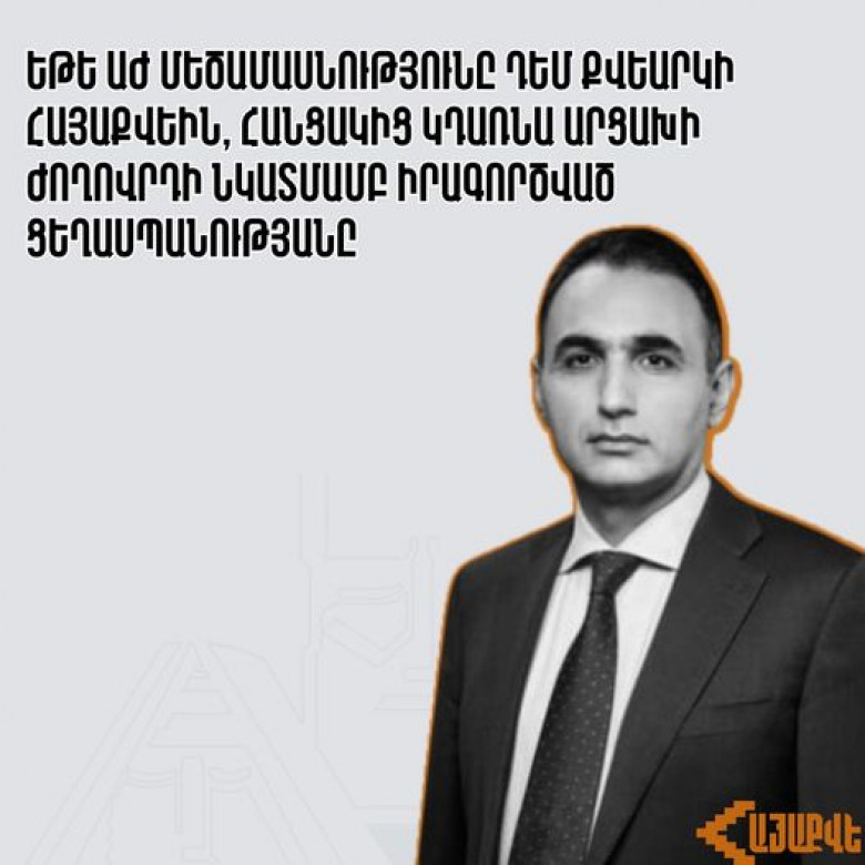 Եթե ԱԺ մեծամասնությունը դեմ քվեարկի ՀայաՔվեին, հանցակից կդառնա Արցախի ժողովրդի նկատմամբ իրագործված ցեղասպանությանը։