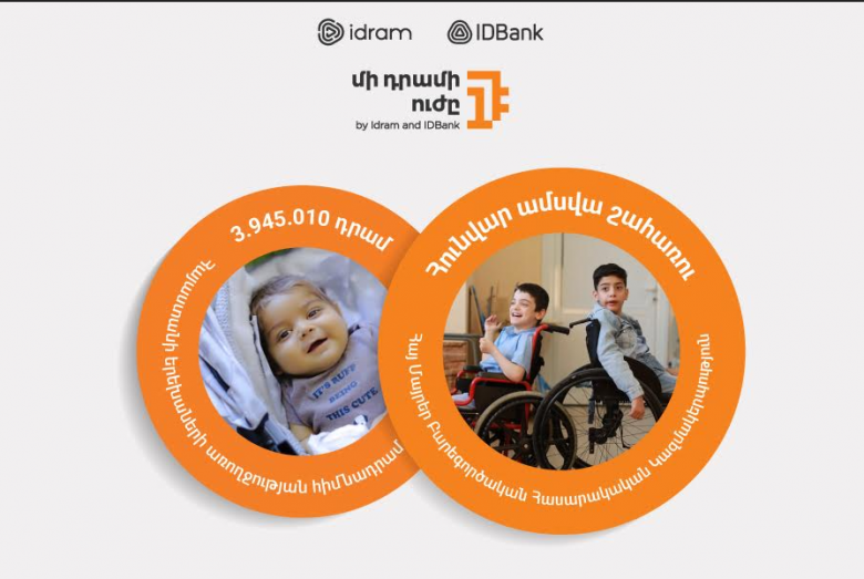 ՀԱՍԱՐԱԿՈՒԹՅՈՒՆԻդրամն ու IDBank-ը ամփոփում են «Մի դրամի ուժը» նախաձեռնության դեկտեմբեր ամսվա ծրագիրը։ Դեկտեմբերին ընկերությունների հաճախորդների կատարած վճարումների դիմաց կուտակված «մի դրամները»՝ 3.945.010 դրամ, այս ամիս ուղղվում են Հայաստանի երեխաների առողջության հիմնադրամին։