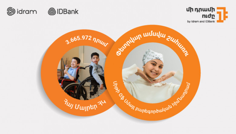 ՀԱՍԱՐԱԿՈՒԹՅՈՒՆIDBank-ը և Իդրամը ամփոփում են «Մի դրամի ուժը» նախաձեռնության հունվար ամսվա ծրագիրը։ Կուտակված «մի դրամները»՝ 3 665 972 դրամ, ուղղվել են «Հայ մայրեր» բարեգործական հիմնադրամին։