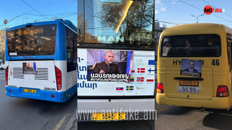 ՀԱՍԱՐԱԿՈՒԹՅՈՒՆԵրևանի հասարակական տրանսպորտի վրա շարունակում են հայտնվել Նիկոլ Փաշինյանի ռեժիմի կողմից ազատությունից ապօրինի կերպով զրկված անձանց լուսանկարները։ Մասնավորապես, Երևանի ավտոբուսների վրա հայտնվել են ՀՀԿ ԳՄ անդամ Արմեն Աշոտյանի, «ՎԵՏՕ» շարժման հիմնադիր Նարեկ Մալյանի և Վանաձորի համայնքապետ Մամիկոն Ասլանյանի «քաղբանտարկյալ» գրությամբ լուսանկարները։ Լուսանկարներն արված են մայրաքաղաքի տարբեր հատվածներում։