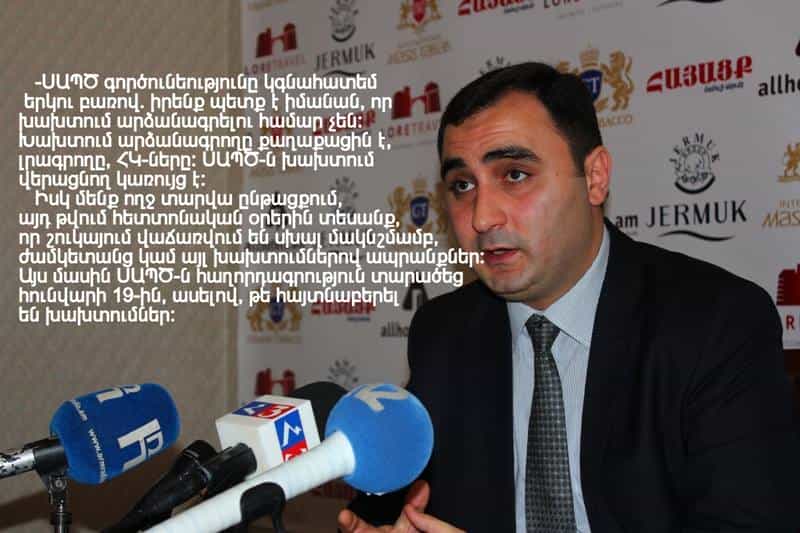 ՀԱՍԱՐԱԿՈՒԹՅՈՒՆ«Իրազեկ եւ պաշտպանված սպառող» ՀԿ նախագահ Բաբկեն Պիպոյանն այսօր «Հայացք» մամուլի ակումբում խոսեց սպառողների իրավունքների բազմաթիվ խախտումների մասին, որ գրանցվել են հետտոնական օրերին մեր հանրապետությունում: