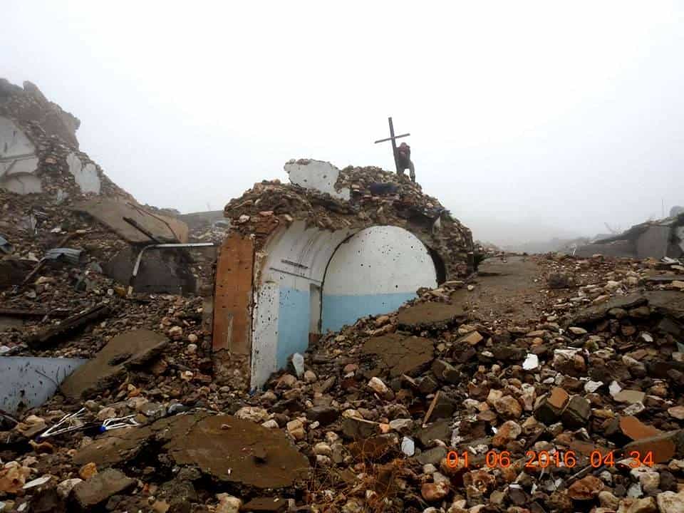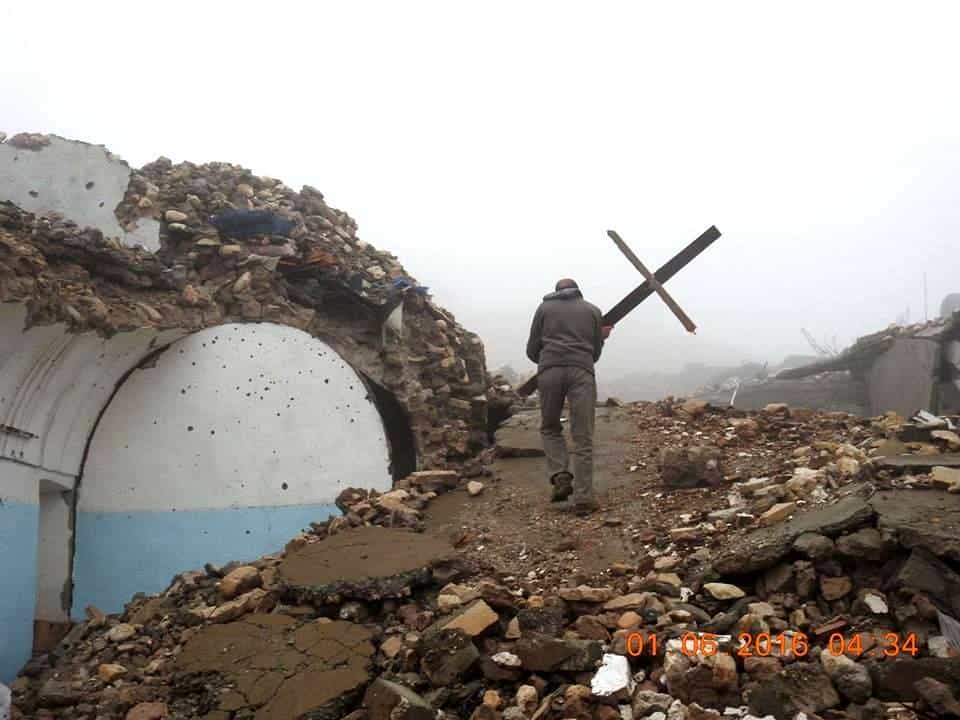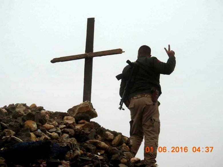 Եզդի ազատամարտիկները քանդված եկեղեցու վրա քրիստոնեական խաչ են տեղադրել (լուսանկարներ)