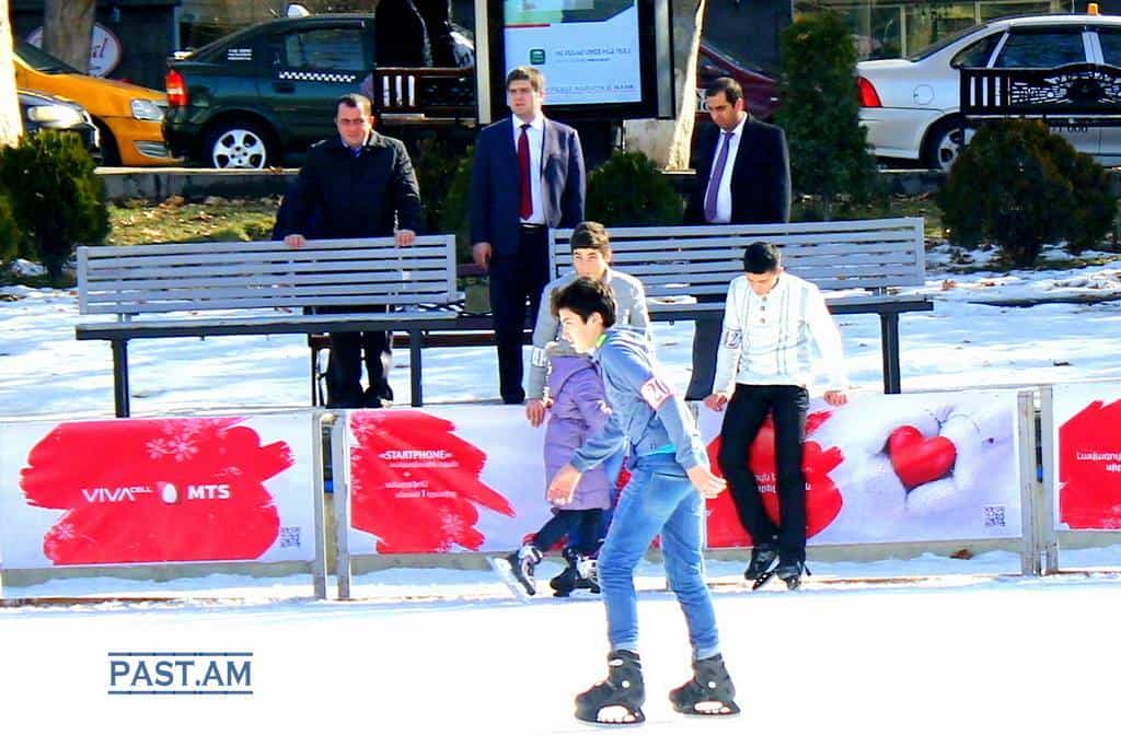 Երեւան, Կարապի լիճ: Պաշտոնյաները նախանձով են հետեւում սառցադաշտում սահող պատանիներին: