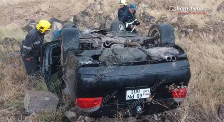Խոշոր վթար՝ Արագածոտնում. «BMW»-ն բախվել է քարերին ու գլխիվայր հայտնվել դաշտում, 2 վիրավnր կա