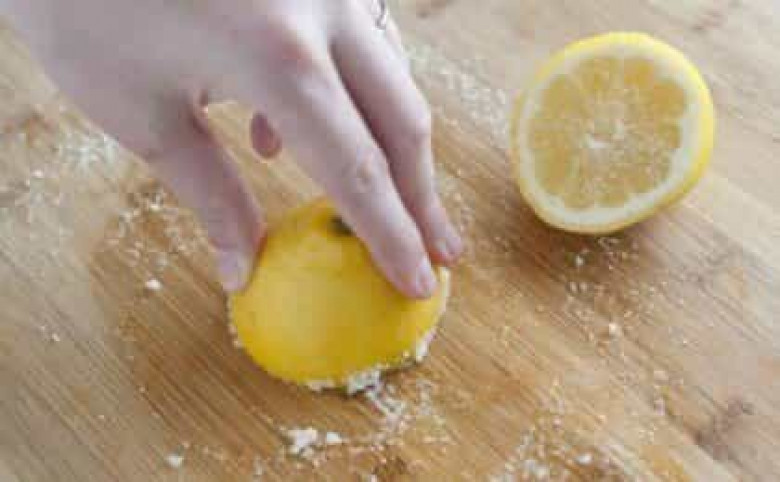 3. Աղի հետ խառնած կիտրոնը հիանալի մաքրում, ախտահանում ու վերացնում է մթերքի կտրատման համար նախատեսված փայտե տախտակի վրայի բոլոր լաքաներն ու տհաճ հոտը:
