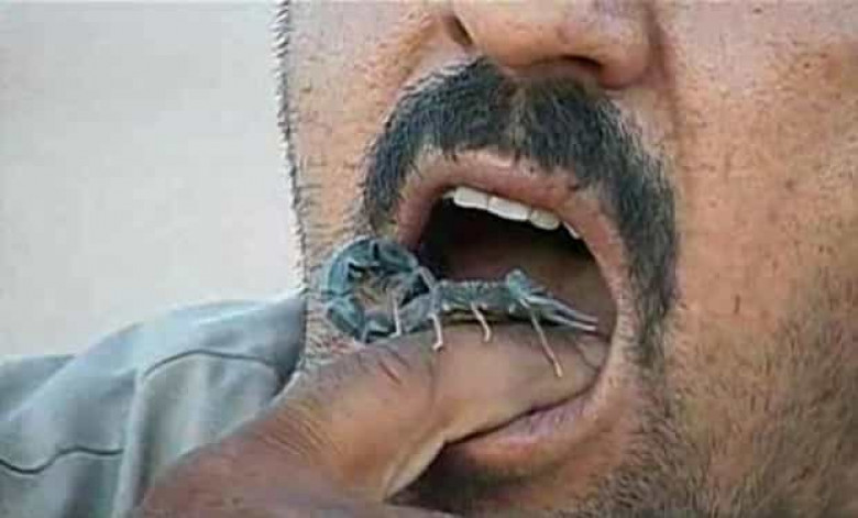 Այս տղամարդը Սամարրա քաղաքից է, որը գտնվում է Իրաքում: Նա պնդում է, որ սննդակարգում անպայման պետք է կարիճ լինի: եթե նա ինչ-որ օր կարիճ չի ուտում, ապա այդ օրը տրամադրություն չի ունենում: