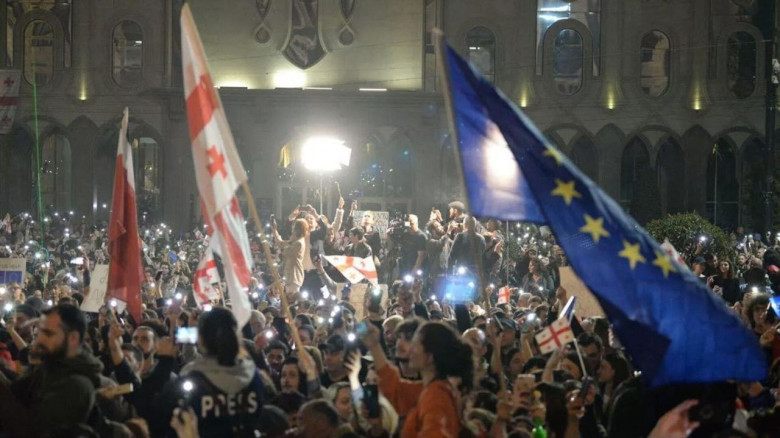 Մայրաքաղաքի մի քանի հազար բնակիչ՝ Վրաստանի և ԵՄ դրոշները ձեռքին, երթ են անցկացնում Թբիլիսիի հինգ տարբեր թաղամասերում։