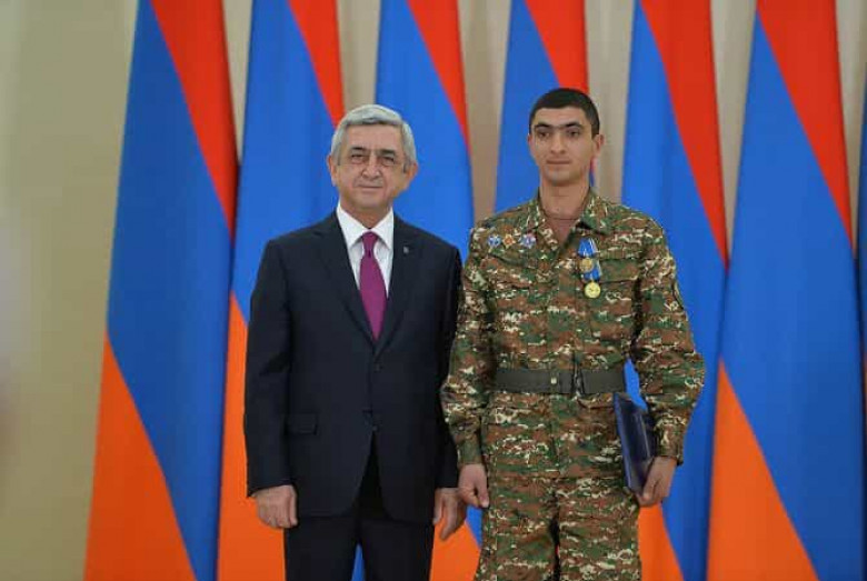ՀՀ Նախագահը հակառակորդի կրակոցից վիրավորում ստացած զինծառայողին պարգևատրեց մարտական ծառայության մեդալով
