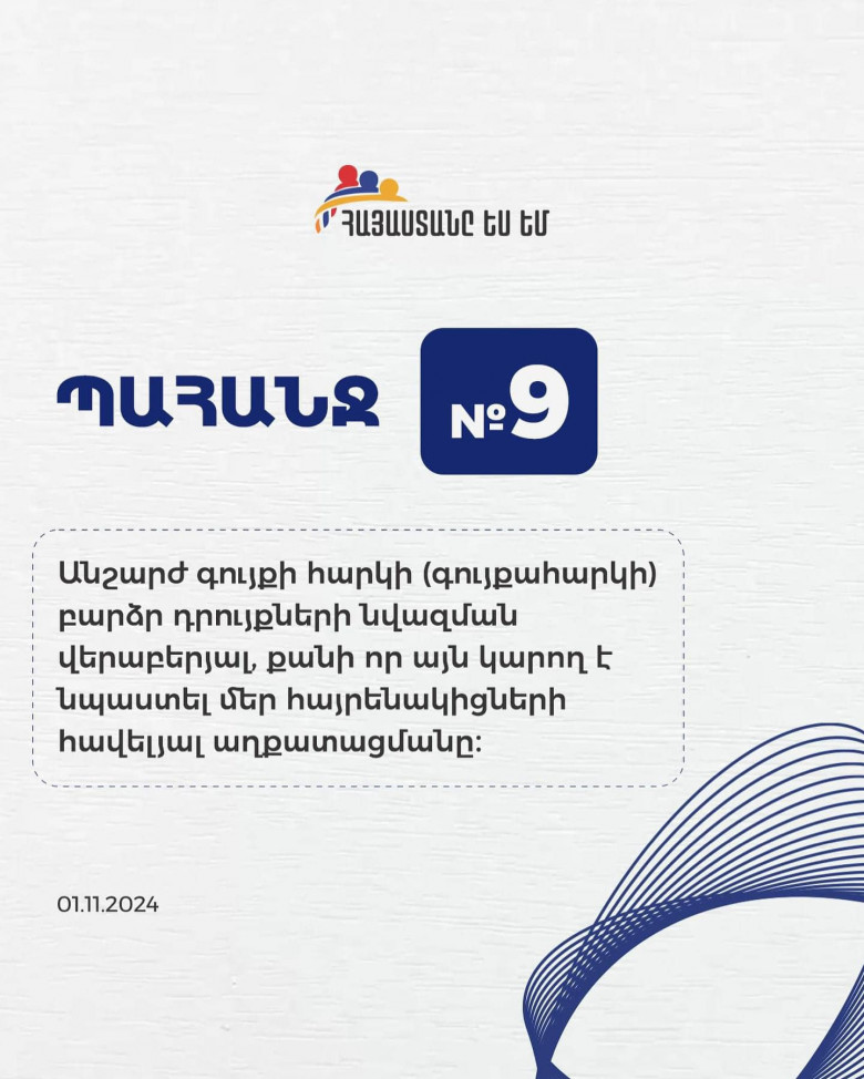 ՀԱՍԱՐԱԿՈՒԹՅՈՒՆ«Հայաստանը ես եմ» նախաձեռնությունը ՀՀ իշխանություններին ներկայացրել է 9-րդ առաջարկ-պահանջը, որտեղ ասվում է․