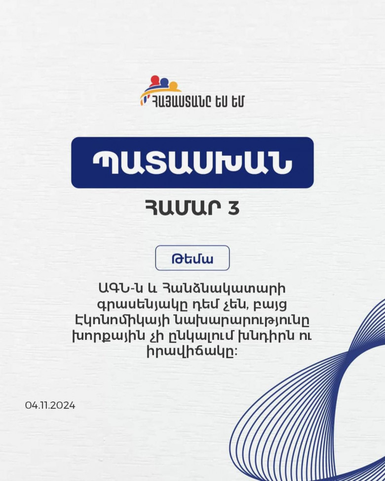 ՔԱՂԱՔԱԿԱՆ«Հայաստանը ես եմ» նախաձեռնությունը ներկայացրել է ՀՀ պետական կառույցներից ստացած 3-րդ առաջարկ-պահանջի պատասխանը։
