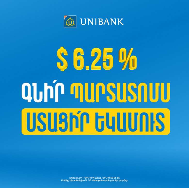 ՀԱՍԱՐԱԿՈՒԹՅՈՒՆՅունիբանկը թողարկել է 10 մլն ԱՄՆ դոլարի ստորադաս պարտատոմսերի թողարկման մասին: Տարեկան արժեկտրոնային տոկոսադրույքը կազմում է 6.25%, պարտատոմսերի մարման ժամկետը՝ 7 տարի: Արժեկտրոնային եկամուտը կվճարվի եռամսյակը մեկ: