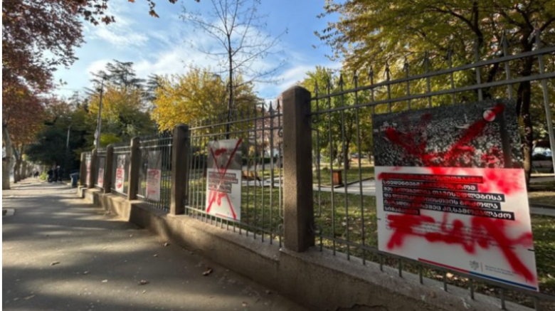 Թբիլիսիում կարմիր ներկ են լցրել Չեխոսլովակիայում 1989 թվականի թավշյա հեղափոխությանը նվիրված պաստառների վրա