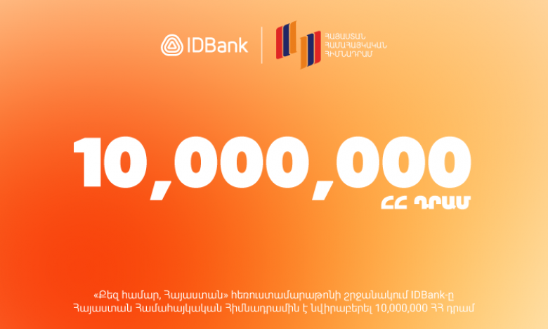 IDBank-ը 10 000 000 դրամ է նվիրաբերել «Քեզ համար, Հայաստան» 27-րդ Հեռուստամարաթոնին