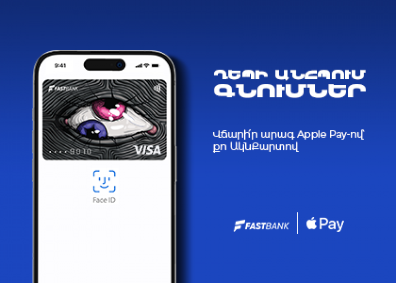 ՀԱՍԱՐԱԿՈՒԹՅՈՒՆՖասթ Բանկի հաճախորդների համար այսուհետ հասանելի կլինի Apple Pay վճարման ծառայությունը, որն ավելի արագ, ապահով և անվտանգ գործարքներ է իրականացնում Apple սարքավորումների միջոցով։ Apple Pay գործիքը հնարավորություն է տալիս կցել քարտը iPhone, Apple Watch, iPad, Mac սարքերում և անհպում վճարումներ իրականացնել ոչ միայն առևտրի, սպասարկման կետերում, սրճարաններում, այլև առցանց խանութներում և հավելվածներում։