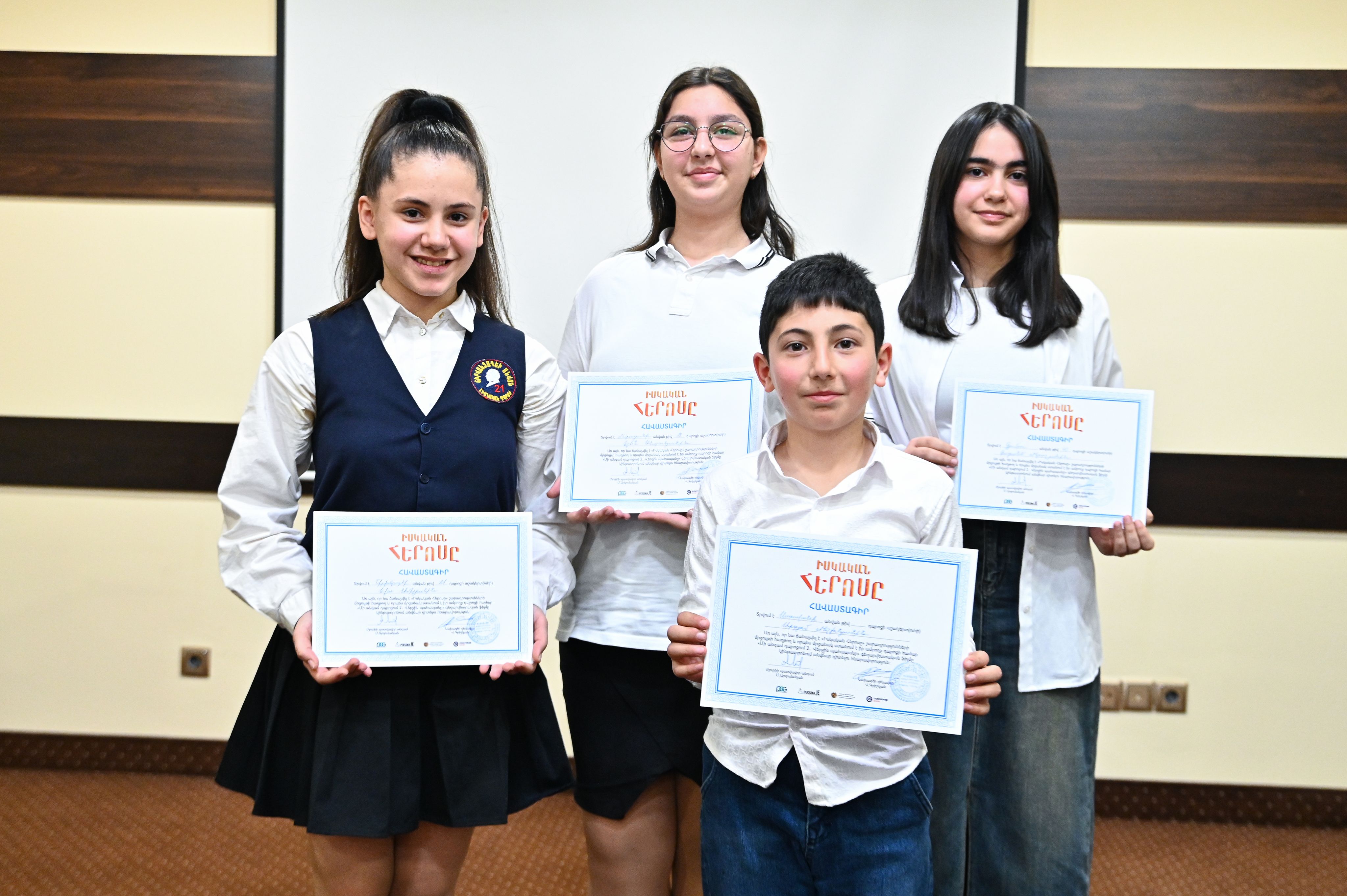Արդյունքում հաղթող ճանաչվեցին Երևանի Մուրացանի անվան հ․18 հիմնական դպրոցի աշակերտ Էլեն Անտոնյանը, Ալ. Շիրվանզադեի անվան հ. 21 հիմնական դպրոցի աշակերտ Եվա Ամիրյանը, Սարավանի հիմնական հանրակրթական դպրոցի աշակերտ Արտյոմ Մելքոնյանը և Գյումրու հ․ 40 հիմնական դպրոցի աշակերտ Գայանե Մկրտչյանը։