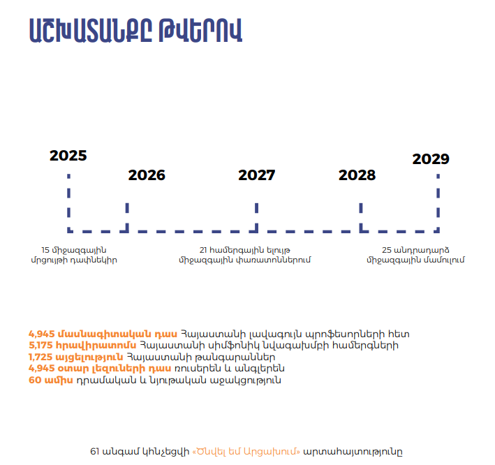 Մշտապես նշում ենք, որ երիտասարդ տաղանդավոր երաժիշտները միջազգային հարթակներում մեր պետության և մշակույթի դեսպաններն են: «Ծնվել եմ Արցախում» կրթական ծրագիրը հնարավորություն կտա երիտասարդներին միջազգային բեմերում հանդես գալ որպես Արցախի մշակութային դեսպաններ, բազմիցս խոսել իրենց ծննդավայրի մասին: Պատմությունն ու մշակույթը նաև այս կերպ են պահպանում: