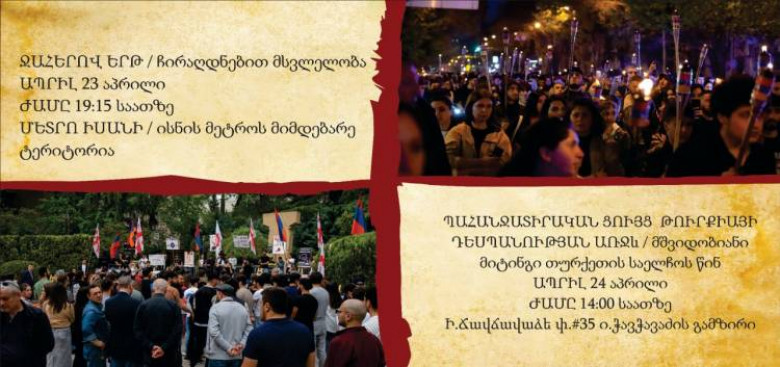 Վրաստանի Հայ Համայնքի աջակցությամբ, Վրաստանի Երիտասարդական Միությունը կազմակերպում է` ավանդական ջահերով երթ Իսանի մետրոյի հարակից տարածքից դեպի Ավլաբարիի Սուրբ Էջմիածին եկեղեցու բակում գտնվող Հայոց Ցեղասպանության անմեղ զոհերին նվիրված խաչքարի ուղղությամբ և վերջում եկեղեցում կանցկացվի խաղաղության աղոթք և մոմավառություն։