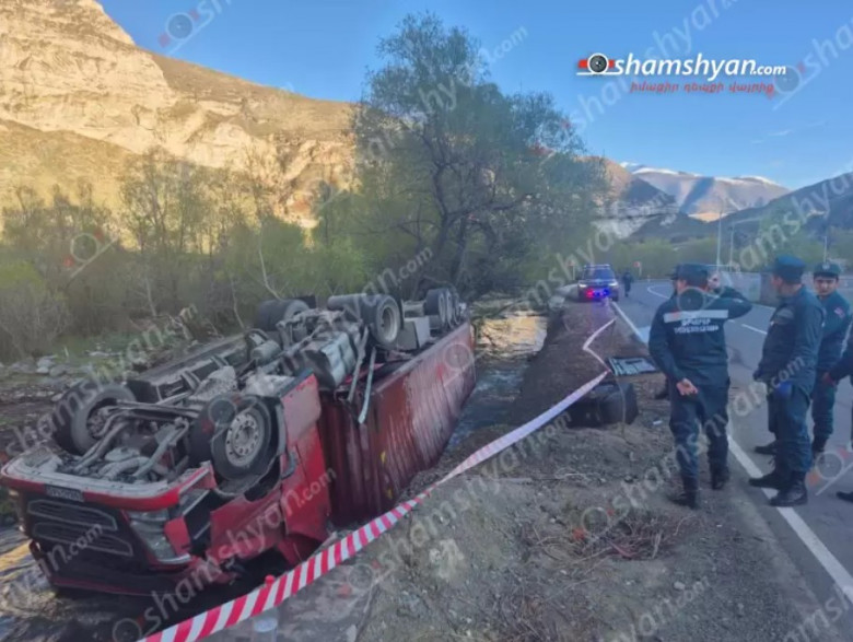 Իրանցի վարորդը «Volvo» բեռնատարով դուրս է եկել երթևեկելի գոտուց և գլխիվայր հայտնվել Որոտան գետում