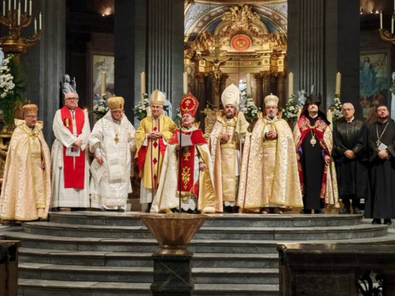 Հայկական ծիսակարգով կազմակերպված պատարագը մատուցվել է Հայ կաթողիկե եկեղեցու Ֆրանսիայի թեմի առաջնորդ Գերապայծառ Եղյա եպիսկոպոս Եղիայանի նախագահությամբ՝ Հայ առաքելական եկեղեցու Ֆրանսիայի թեմի առաջնորդ Գերաշնորհ Տեր Գրիգոր եպիսկոպոս Խաչատրյանի, Ֆրանսիայի Հայ ավետարանչական եկեղեցու առաջնորդ Ժոել Միքայելյանի, Ֆրանսիայի կաթոլիկ եկեղեցու ներկայացուցիչ, Փարիզի քորեպիսկոպոս Էմանուել Տուայի, ինչպես նաև՝ քույր եկեղեցիների քահանաների մասնակցությամբ: