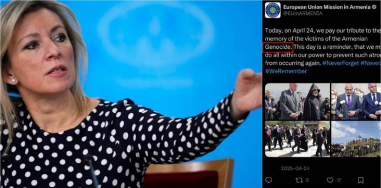 «Անհավանական ցինիզմ և ստորություն»․ ՌԴ ԱԳՆ պաշտոնական ներկայացուցիչ Մարիա Զախարովան արձագանքել է ՀՀ-ում ԵՄ-ի ներկայացուցչության X-ում արված գրառմամբ, խմբագրվել է «Ցեղասպանություն» բառը, իսկ տեքստի փոփոխությունից հետո ընդհանրապես հեռացվել։