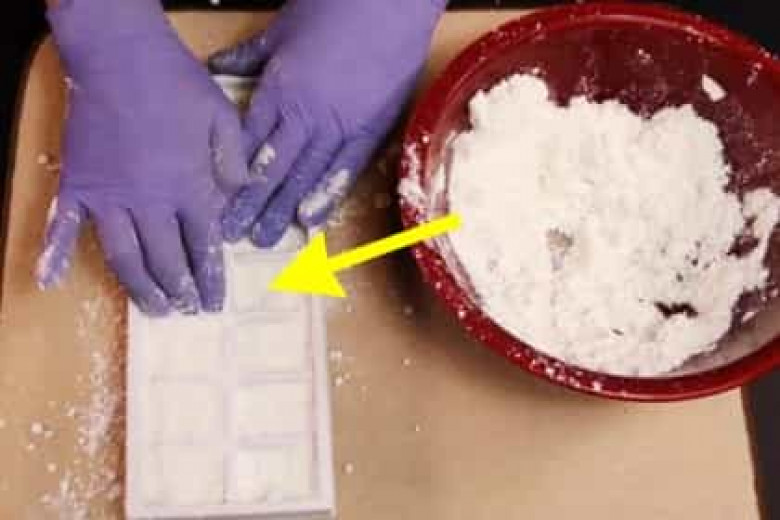 Հագեք կենցաղային ձեռնոցներ և լավ խառնեք ստացված խառնուրդը: Հետո այդ խառնուրդը լցրեք սառույցի համար նախատեսված ձևամանի մեջ:
