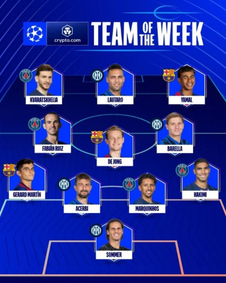 Չեմպիոնների լիգայի կիսաեզրափակիչի «Ինտեր» - «Բարսելոնա» (4:3) եւ ՊՍԺ - «Արսենալ» (2:1) պատասխան հանդիպումներից հետո ՈՒԵՖԱ-ն ներկայացրել է շաբաթվա խորհրդանշական հավաքականը։
