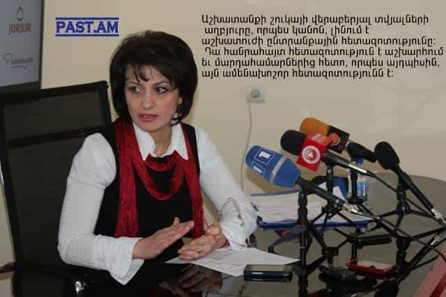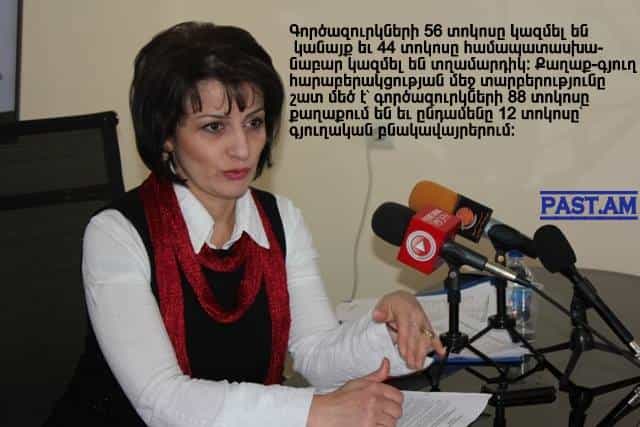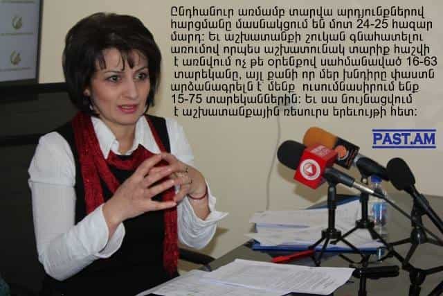 Նա խոսեց Հայաստանի աշխատանքի շուկայում տիրող իրավիճակից, կին-տղամարդ եւ քաղաք-գյուղ բաշխման մեջ գործազրկության մակարդակի տոկոսային տարբերության մասին: