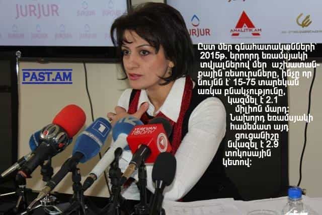 «Ըստ մեր գնահատականների՝ 2015թ. երրորդ եռամսյակի տվյալներով մեր աշխատանքային ռեսուրսները կազմել են 2.1 միլիոն մարդ».Լուսինե Քալանթարյան